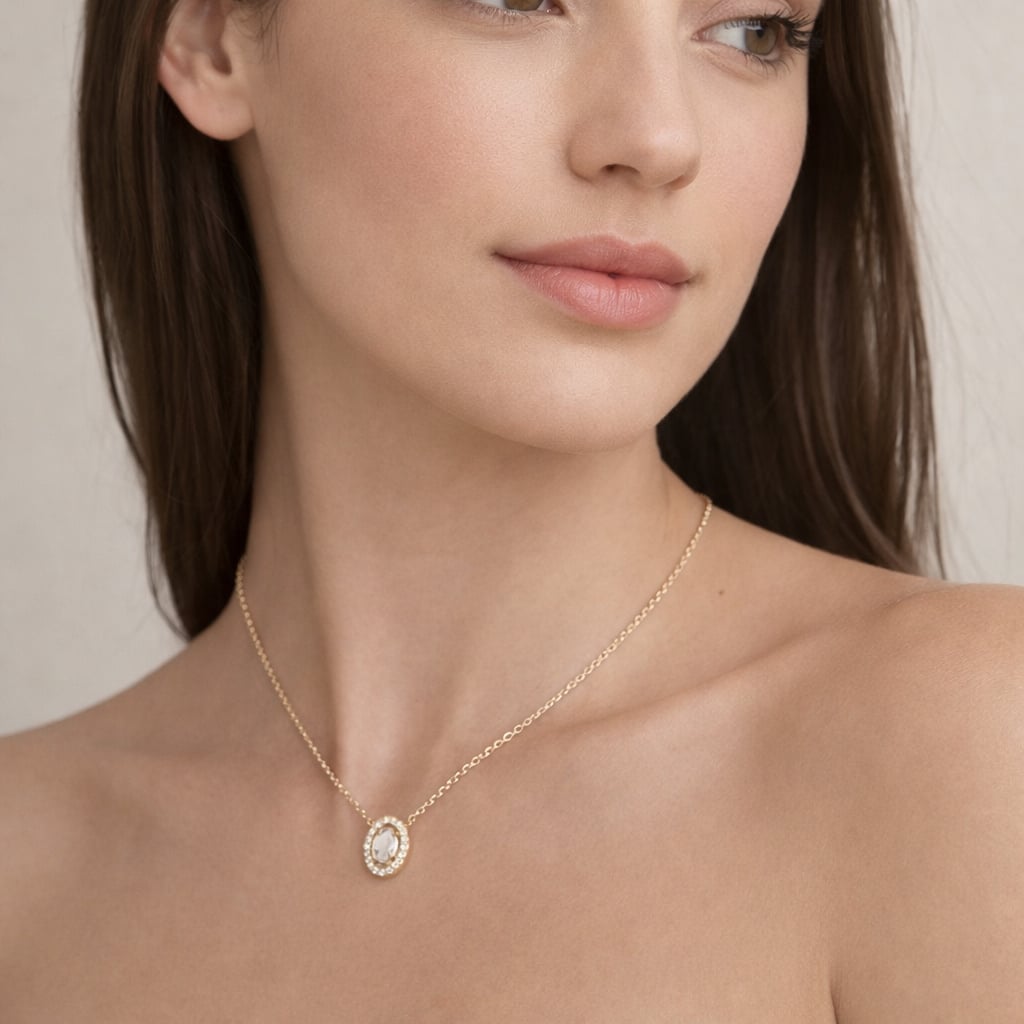 77 €69 € - Collier ovale oxydes de zirconium - Plaqué Or-10%