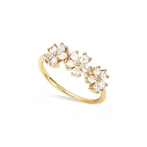 - Bague - Trio fleurs - Plaqué Or