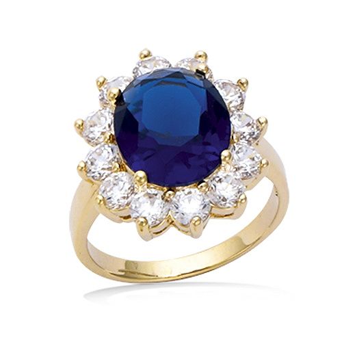 32.00 € - Bague ovale - Bleu saphir - Plaqué Or