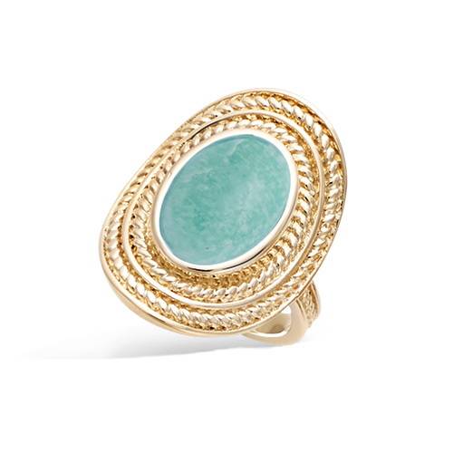 32.00 € - Bague ovale - Amazonite véritable - Plaqué Or