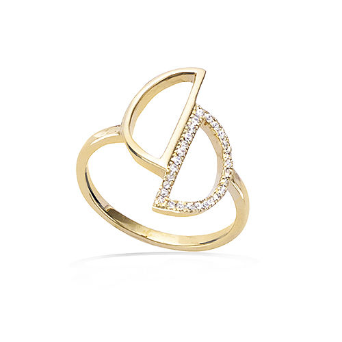 63.00 € - Bague - Deux Demis Cercles - Plaqué Or