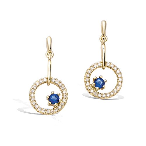 29 € - Boucles d’oreilles pendantes rondes saphir diamètre 10 mm - Plaqué Or