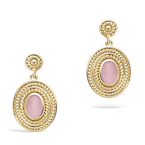 42 € - Boucles d’oreilles pendantes ovales avec pierre véritable - Plaqué Or