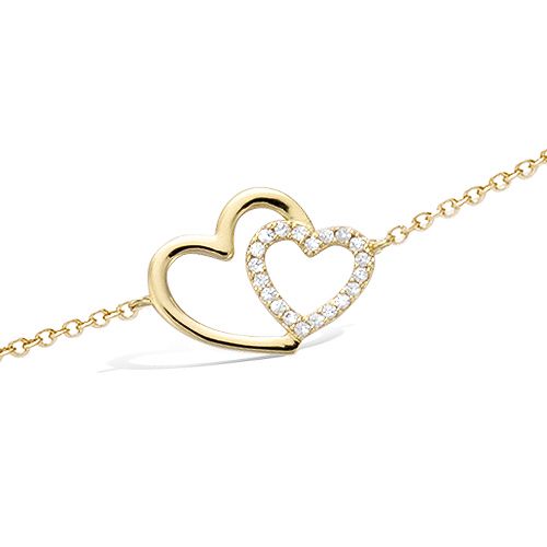 32.00 € - Bracelet - double coeur - Plaqué Or