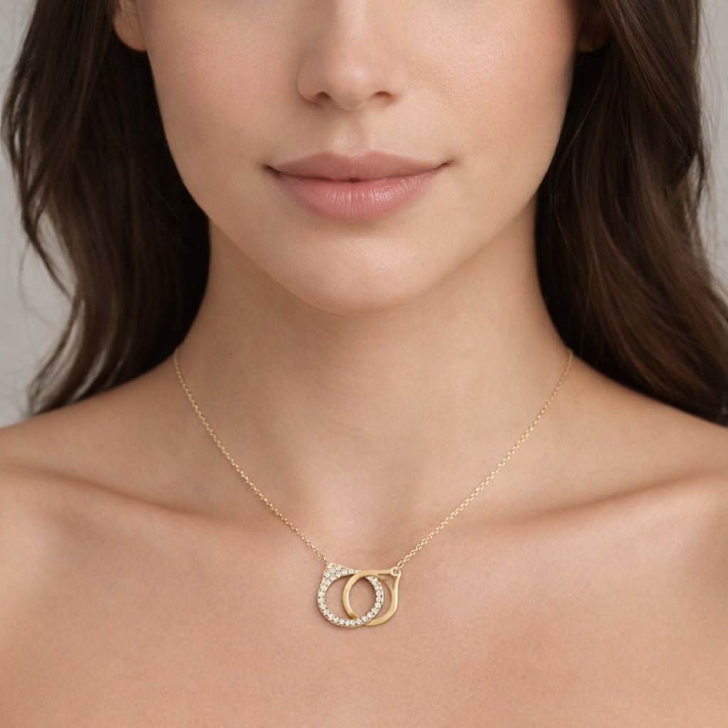 83 € - Collier double cercle entrelacé oxydes - Plaqué Or