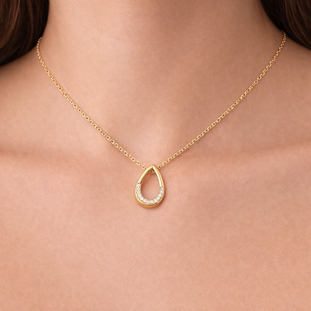 44 € - Collier goutte ajourée demi pavée oxydes de zirconium - Plaqué Or
