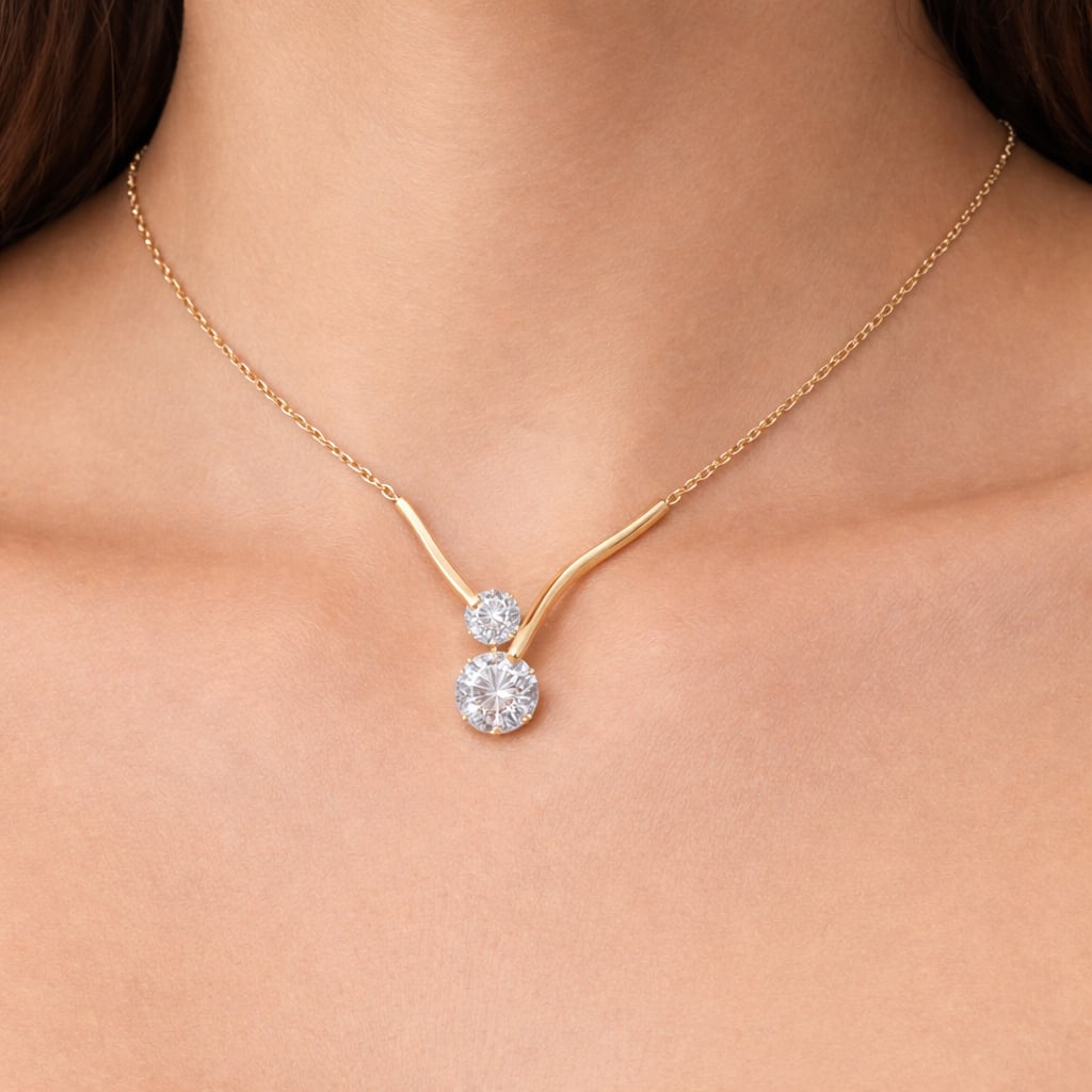 36 € - Collier motif double oxydes blancs - Plaqué Or