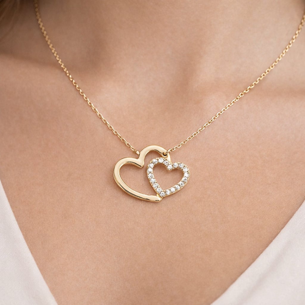 - Collier double cœur croisé oxydes - Plaqué Or