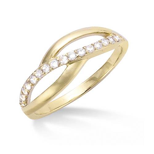 Cette bague croisée en plaqué or est délicatement ornée d'oxydes blancs. Son design fluide met en valeur une rangée de pierres brillantes serties avec soin.