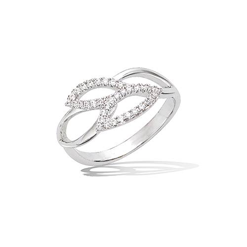 Bague avec motif de feuillage ajouré et oxydes blancs.
