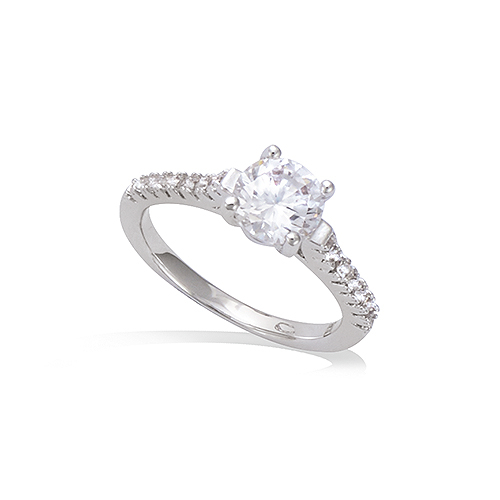 Bague solitaire oxydes blancs 7 mm - Argent 925