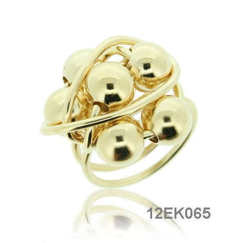 Bague en plaqué or présentant un jeu de boules interconnectées. Les sphères brillantes créent un effet dynamique et sculptural.
