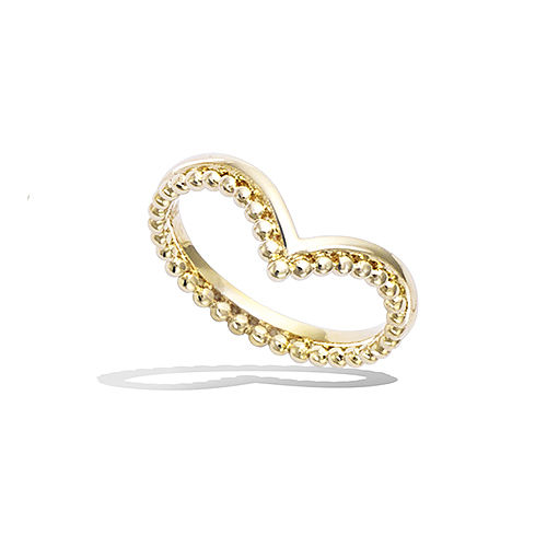 Bague en plaqué or présentant un motif en forme de V. Ses courbes fluides et les boules lisses ajoutent une touche d'élégance à ce bijou.