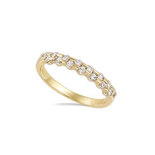 Bague en plaqué or ornée de double rangées d'oxydes de zirconium blancs. La structure ajourée accentue l'éclat des pierres disposées avec précision.