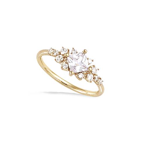 Bague carrée oxydes blancs - Plaqué Or