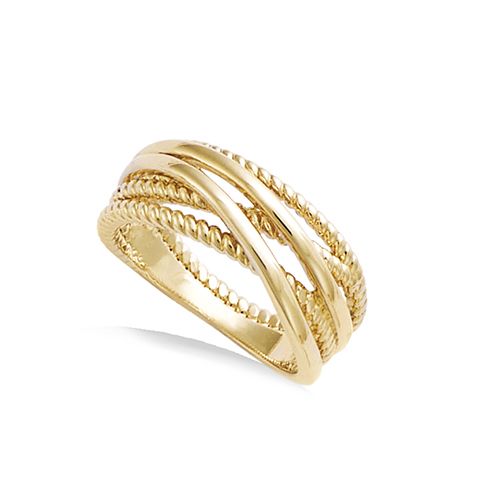 Cette bague entrelacée est en plaqué or. Les lignes de la monture s'entrelacent avec délicatesse, créant un jeu de lumière raffiné.