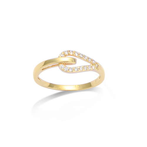 Bague en plaqué or à double anneau, dotée d'une élégante forme en goutte ornée d'oxydes de zirconium blancs. Les lignes délicates et le pavage lumineux apportent une touche de sophistication à ce bijou.