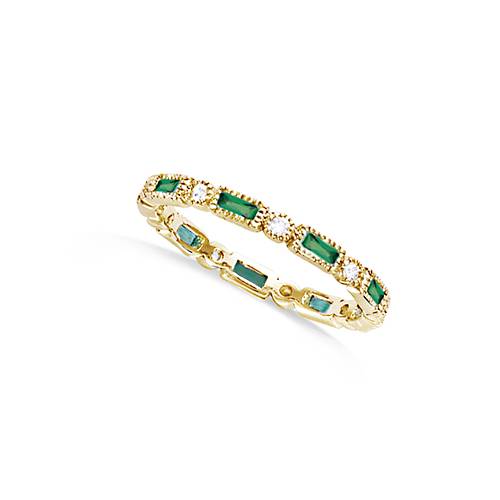 Bague plaquée or avec du cristal de couleur vert émeraude et oxydes blancs.