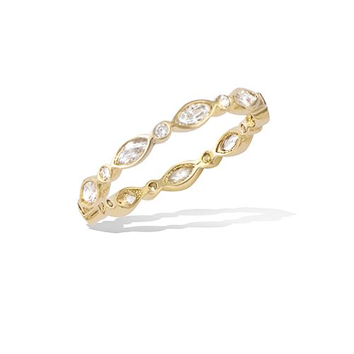 Cette bague en plaqué or se distingue par son motif ovale agrémenté d'oxydes blancs. Son design délicat et raffiné met en valeur un pavage de pierres éclatantes, offrant une touche d'élégance à l'éclat subtil.