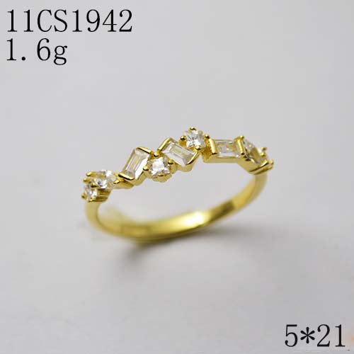 Bague rectangle oxydes blancs serti clos - Plaqué Or