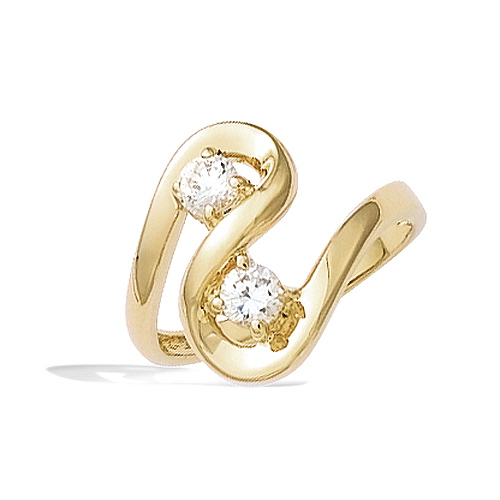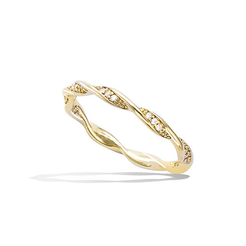 Bague en plaqué or avec un motif en spirale, ornée d'oxydes de zirconium blancs. Sa structure délicate arbore des courbes fluides et une disposition harmonieuse des pierres.