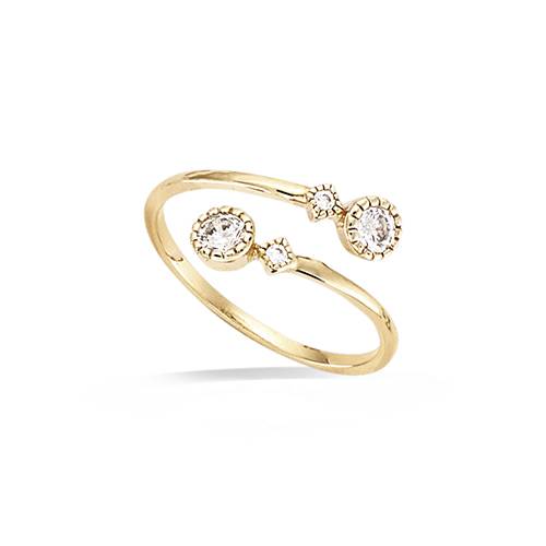 Cette bague ouverte en spirale est conçue en plaqué or et ornée d'oxydes de zirconium blancs en serti clos. Sa structure délicate présente des courbes raffinées, mettant en valeur le scintillement des pierres.