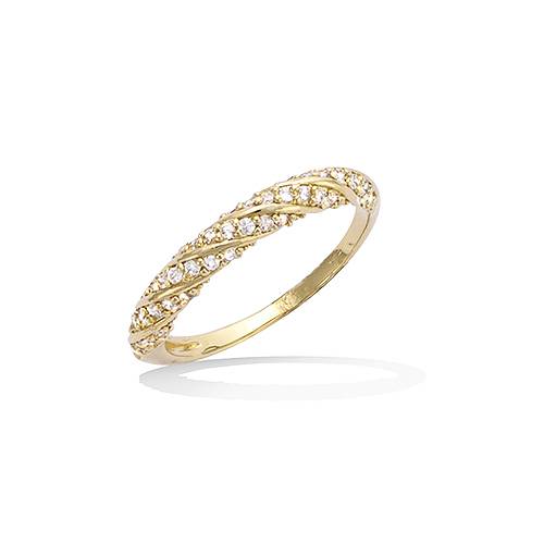 Cette bague en plaqué or présente un élégant motif torsadé orné d'oxydes de zirconium blancs. La douceur des courbes crée une harmonie parfaite pour le bijou.