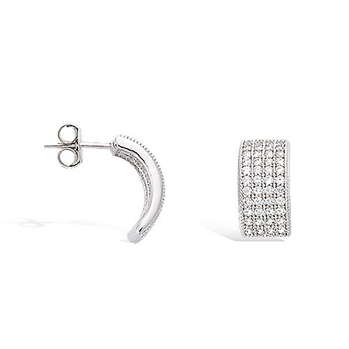Boucles d’oreilles de forme bombée en Argent 925, ornées d'oxydes de zirconium blancs. Leur structure présente un pavage lumineux de pierres disposées avec soin.