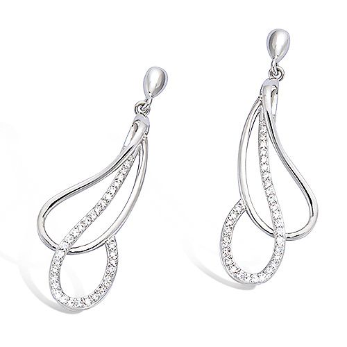 Boucles d'oreilles en forme de goutte évidée croisée accompagnées d'oxydes blancs.