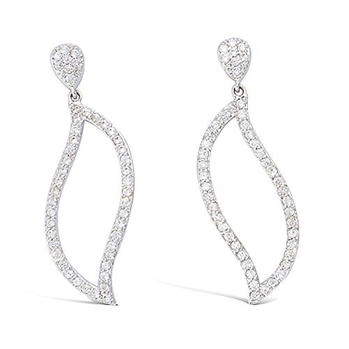 Boucles d'oreilles en forme de feuille évidée, serties d'oxydes blancs.
