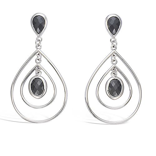 Boucles d'oreilles en argent avec deux gouttes mobiles et oxyde noir en facette.