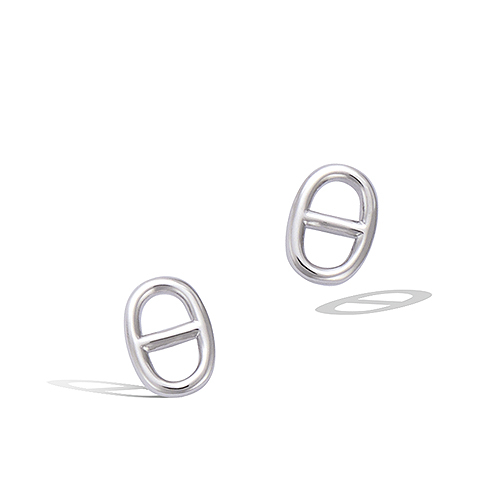 Boucles d’oreilles en argent 925 au design lisse inspiré de la maille marine. Leur forme graphique et épurée apporte une touche contemporaine.