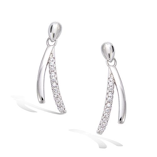 Ces boucles d’oreilles en argent 925 se distinguent par un design élégant en forme de V inverse, orné d’oxydes de zirconium blancs. Leur finition rhodiée rehausse le pavage éclatant, offrant une brillance raffinée.