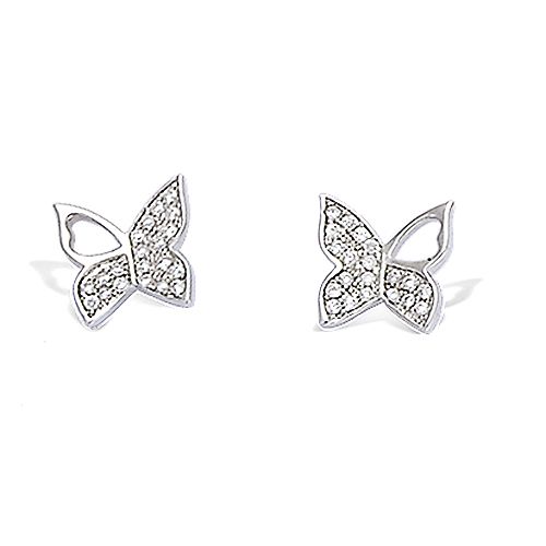 Ces boucles d’oreilles en argent 925 présentent un motif papillon orné d'oxydes de zirconium. Le design ajouré souligne le pavage de pierres blanches, offrant un éclat délicat.
