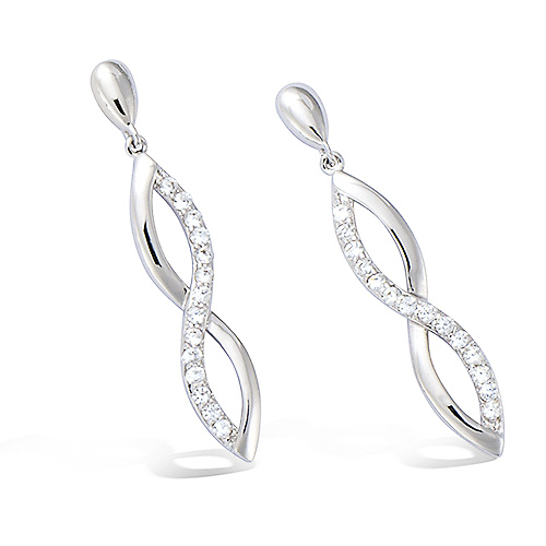Boucles d'oreilles en forme d'infini avec oxydes blancs.