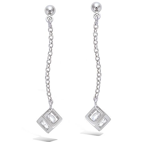 Boucles d’oreilles pendantes cage oxydes blancs - Argent 925