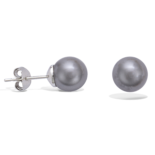 Boucles d'oreilles avec une perle synthétique grise de 8 mm.