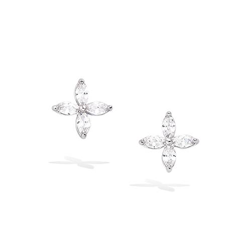 Boucles d'oreilles en forme de fleur avec oxydes blancs sertis griffes.