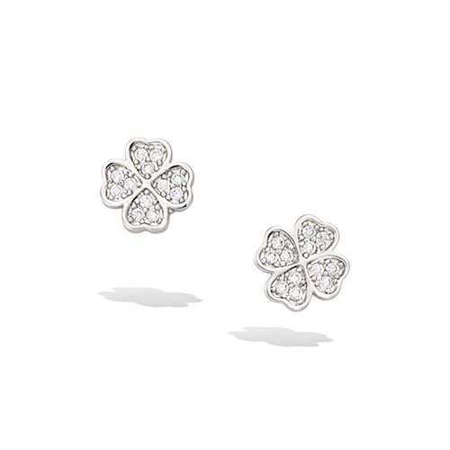 Boucles d'oreilles en forme de trèfle avec oxydes blancs.