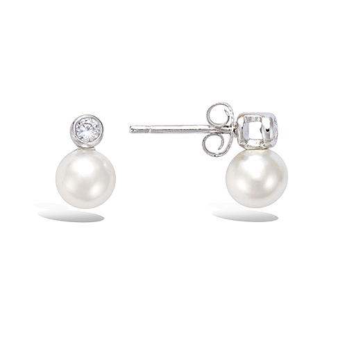 Boucles d'oreilles avec une perle blanche et un serti clos.