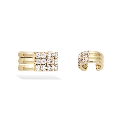 Mono boucle d'oreille en or cartilage avec trois rangées d'oxydes blancs.