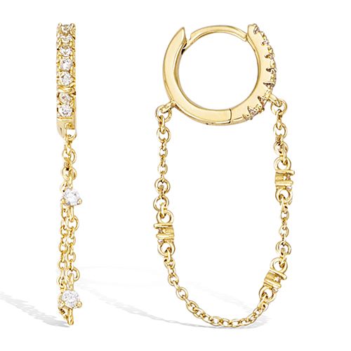 Boucles d’oreilles créoles en plaqué or ornées d'oxydes de zirconium blancs. La chaînette qui les accompagne ajoute une élégance subtile à leur design.