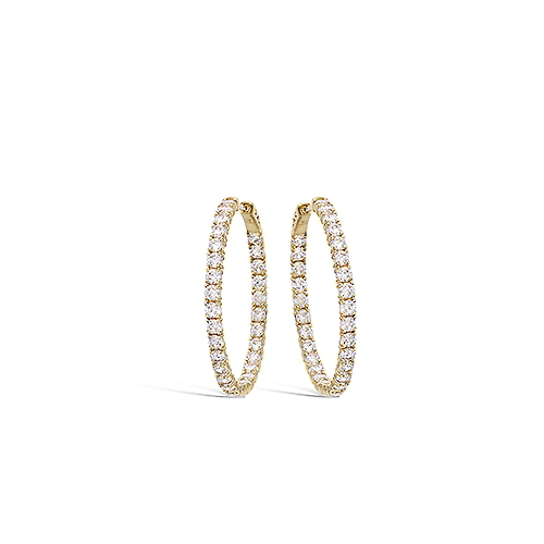 Boucles d’oreilles créoles en plaqué or ornées d’oxydes de zirconium blancs. Leur finition lisse et leur pavage subtil soulignent leur éclat élégant.