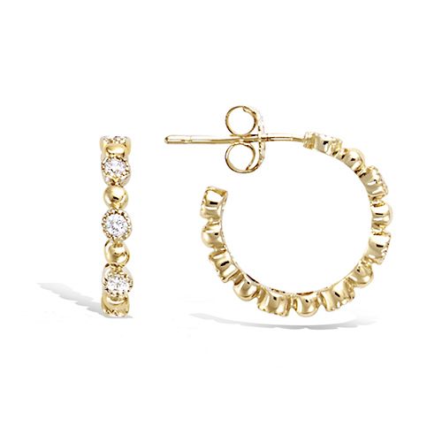 Ces boucles d’oreilles créoles en plaqué or sont embellies d'oxydes blancs. Leur design délicat est accentué par un pavage de pierres qui attire le regard.