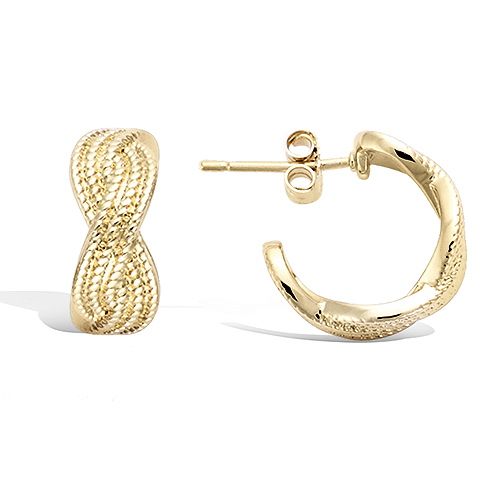 Boucles d’oreilles demi créoles en plaqué or au design tressé simple. Le relief texturé de la tresse apporte une élégance discrète et raffinée.