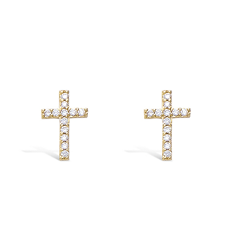Boucles d’oreilles croix oxydes blancs - Plaqué Or
