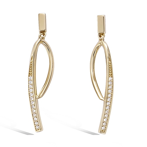 Ces boucles d’oreilles en plaqué or sont ornées d’oxydes de zirconium blancs. Leur motif élégant présente des lignes géométriques scintillantes qui captent la lumière avec brio.