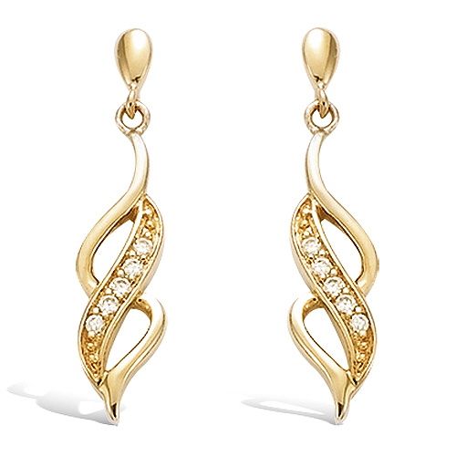 Boucles d'oreilles pendantes motifs ondulés oxydes blancs - Plaqué Or