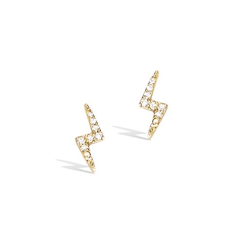 Boucles d’oreilles puces en plaqué or à motif éclair, ornées d'oxydes de zirconium blancs. Le pavage lumineux des oxydes crée un effet éclatant et captivant.