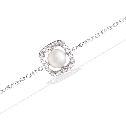 Bracelet carré oxydes blancs avec perle d'eau douce - Argent 925